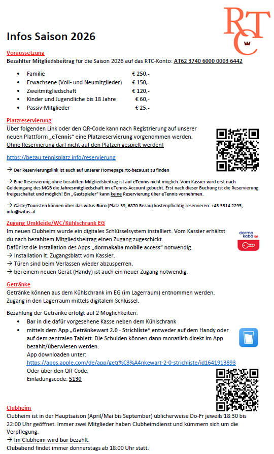Tarife/Infos 2026